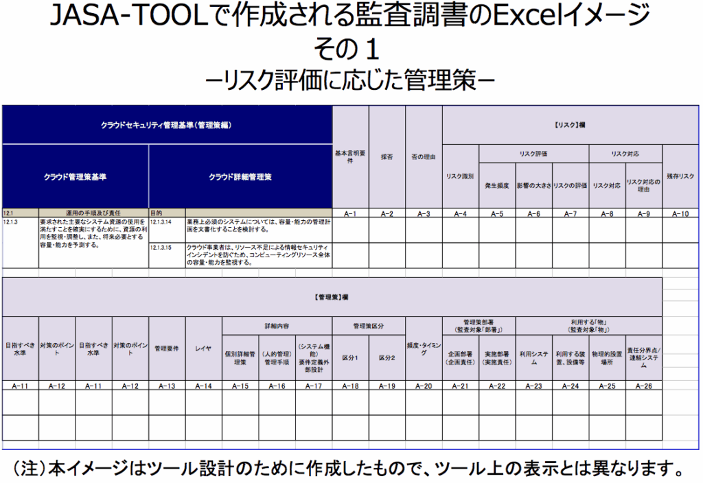 JASA-TOOLで作成される監査調書のExcelイメージ